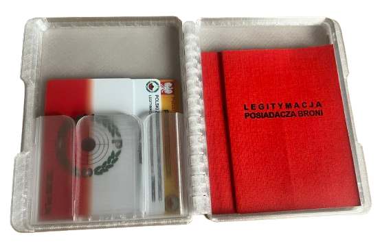 Wszystkie dokumenty, które potrzebujesz podczas pobytu na strzelnicy przechowasz w tym etui.