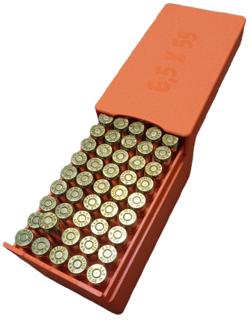 Pudełko / pojemnik na amunicję 6,5x55 (przesuwana pokrywka)