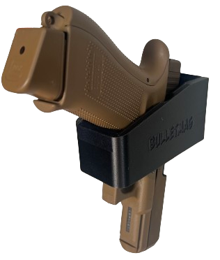 Uchwyt / wieszak jest uniwersalny i pasuje do większości krótkiej broni palnej z dwurzędowymi magazynkami kaliber 9mm.