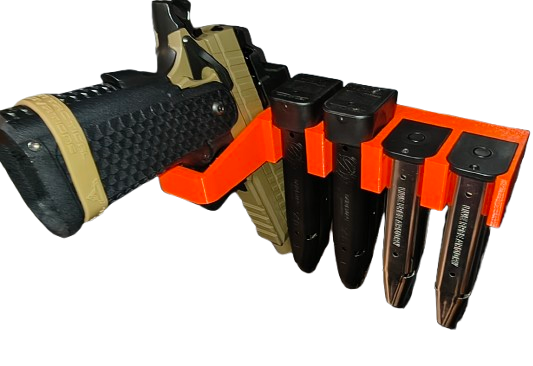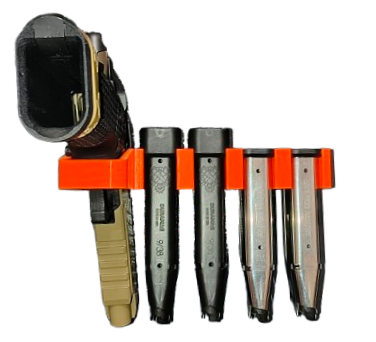Uchwyty / wieszaki pomieszczą/utrzymają także w pełni naładowane magazynki i broń. Wszystkie wymiary są dokładnie przemyślane aby utrzymać magazynki / broń stabilnie. Uchwyty wykonane są z bardzo wytrzymałego tworzywa.