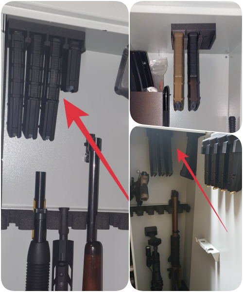 Teraz możesz wygodnie przechowywać swoje magazynki oraz broń tam, gdzie nie mogłeś wcześniej - pozostawiając czysty i funkcjonalny sejf, o którym zawsze marzyłeś!
