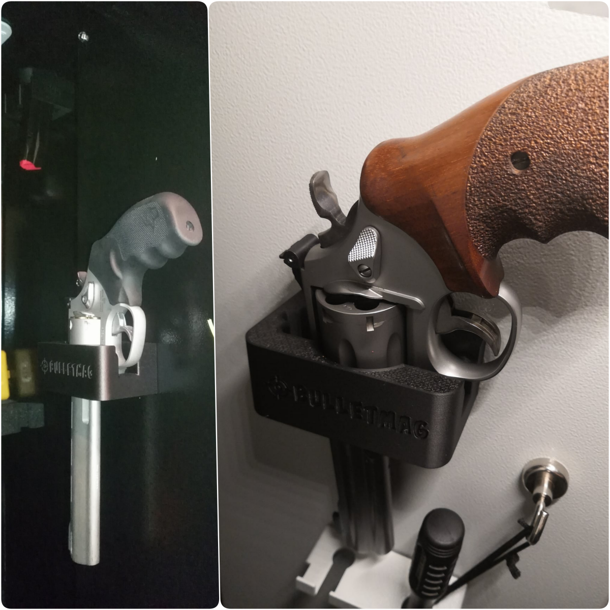 Uchwyty / wieszaki pomieszczą/utrzymają także w pełni naładowane magazynki i broń. Wszystkie wymiary są dokładnie przemyślane aby utrzymać magazynki / broń stabilnie. Uchwyty wykonane są z bardzo wytrzymałego tworzywa.