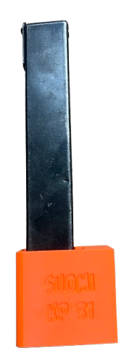Uchwyt / wieszak pasuje do magazynków SUOMI KP 31 kaliber 9×19 MM (magazynki podłużne takie jak na zdjęciu poniżej).