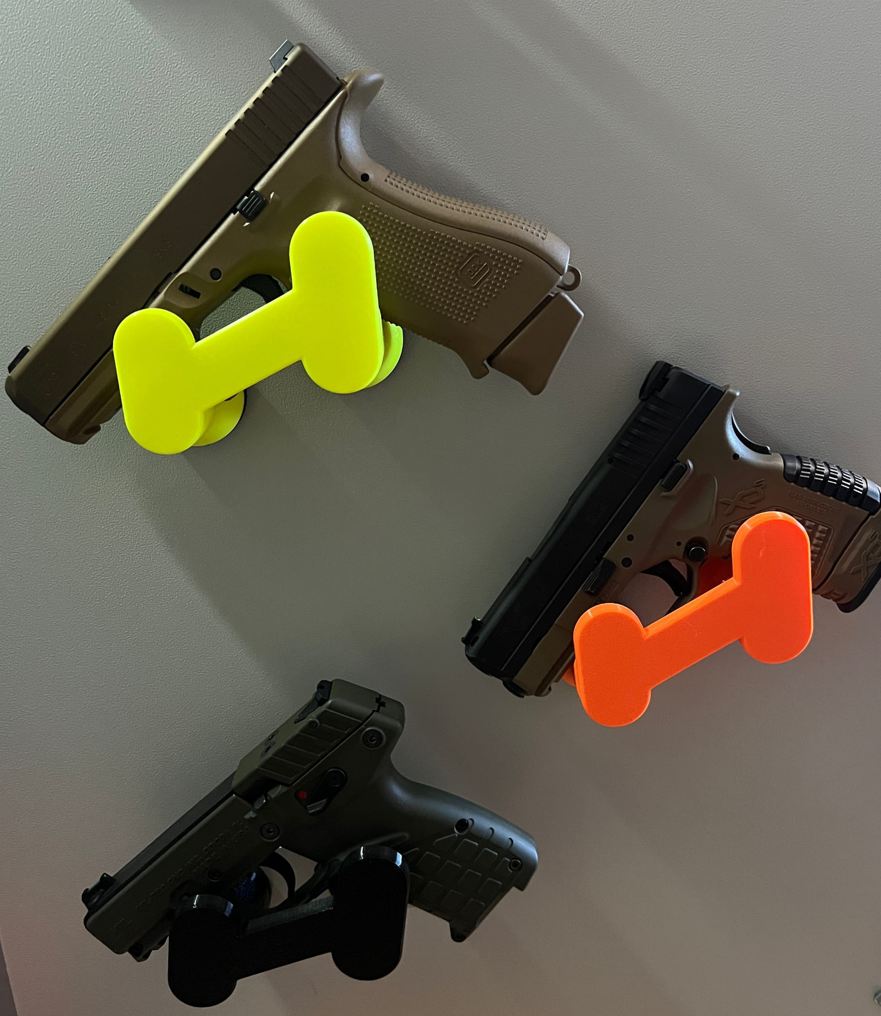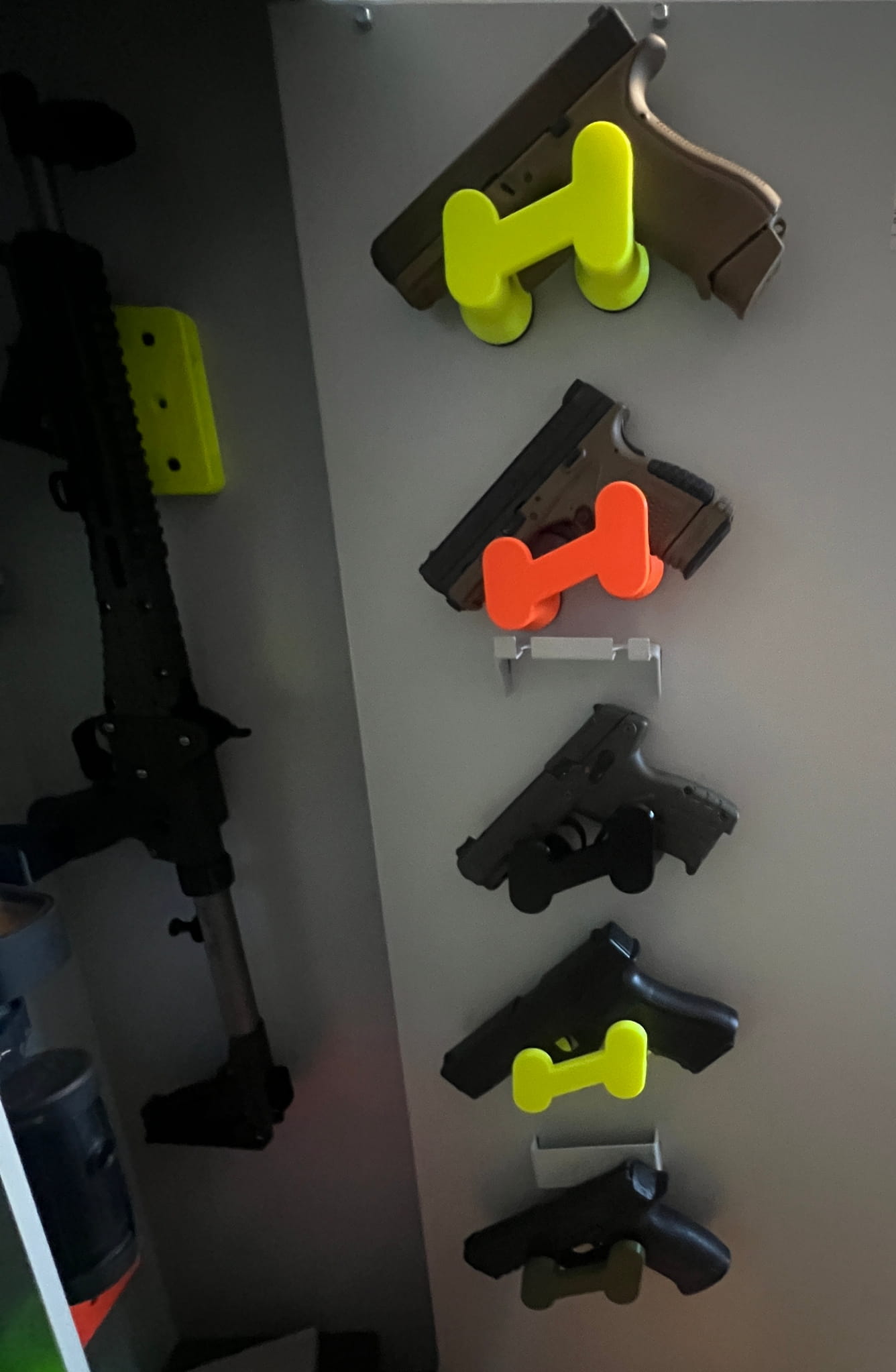 Uchwyty / wieszaki pomieszczą/utrzymają także w pełni naładowane magazynki i broń. Wszystkie wymiary są dokładnie przemyślane aby utrzymać magazynki / broń stabilnie. Uchwyty wykonane są z bardzo wytrzymałego tworzywa.